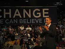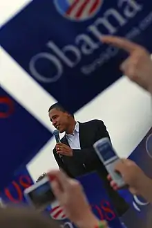 - ↑ "Million-man Obama targets Texas, Ohio after debate." AFP. February 27, 2008. See also: "Message From Barack Archived 2008-02-28 at the Wayback Machine." BarackObama.com February 27, 2008.