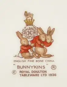 Permission for the project of illustrating Bunnykins tableware for Royal Doulton was granted by the prioress on condition that there be no financial gain from the project for either Bailey or the priory.[3] Bailey stopped illustrating and drawing when her teaching duties made her too busy. Other designers (including Hubert Light, Walter Hayward, Colin Twinn and Frank Endersby) took over the designing process.