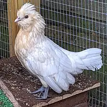 The Barbu de Watermael, Dutch: Watermaalse Baardkriel, is a Belgian breed of bantam chicken. It originated in the Belgian town of Watermael-Boitsfort (Dutch: Watermaal-Bosvoorde), from which it takes its name, which means "bearded [chicken] from Watermael". It is closely related to the Barbu d'Anvers, but is distinguished from it by its small, backswept crest of feathers. The Barbu de Boitsfort is a rumpless variation, the only difference being that it lacks the uropygium, the part of the anatomy that carries the tail.[1]