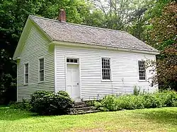 Barkhamsted Center is located near the geographic center of the roughly rectangular town. It is set on the western shore of Barkhamsted Reservoir, centered at the junction of Center Hill Road, Day Road, and Old Town Hall Road. The latter road now comes to an end near the reservoir shoreline. Five of the district's six buildings are public in nature: they are a church and parsonage, school, the old town hall, and a former tavern. The Center Schoolhouse, built in 1821, was originally a two-story building; it was converted to one story about 1880. The first story was removed, keeping the second. The school was moved from its original location, very near the reservoir, to its current location on Center Hill Road in 1980. The school is now a museum run by the Barkhamsted Historical Society. The oldest building is the Nathaniel Collins House, a 1+12-story frame Colonial at 131 Center Hill Road.[2]