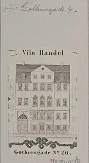 The property and wine business was later passed to Hagen's son Frantz Peter Hagen (1804-1874). At the time of the 1840 census, he resided on the ground floor with his wife Edvardine née Gram, their eight children (aged one to 17), the wife's father Edvard Gram, three employees in the wine business (one of them an apprentice, three male servants and four maids.[7] John von Brackte, a traveller from the Danish West Indies, resided on the first floor with his 25-year-old daughter, three male servants and two maids.[8]