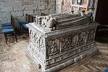 Monument to Sir John Vernon (died 1545) and his wife in St Andrew's Church, Clifton Campville- Maud de Camville, who married Richard de Vernon (died 1323), whom she survived into widowhood, son and heir apparent of Richard de Vernon of Haddon Hall in Derbyshire, who predeceased his father. Her descendants remained connected with the manor of Clifton Campville, as evidenced by the fine effigies of Sir John Vernon (died 1545) and his wife in St Andrew's Church. Her daughter Isabel de Vernon (died 1356) married Richard Stafford, 1st Baron Stafford of Clifton (born post 1301, died 1381), the second son of Edmund Stafford, 1st Baron Stafford of Stafford Castle in Staffordshire (1272/3–1308) and the younger brother of Ralph Stafford, 1st Earl of Stafford, 2nd Baron Stafford (1301–1372) of Stafford Castle).[12][13]