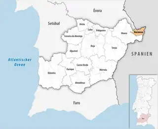 Barranquenho (Barranquenhu[2]) is a Romance linguistic variety spoken in the Portuguese town of Barrancos, near the Spanish border. It is a mixed language, and can be considered either a variety of Portuguese (Alentejan Portuguese) heavily influenced by the Spanish dialects of neighbouring areas in Spain in Extremadura and Andalusia (especially those from Encinasola and Rosal de la Frontera),[3] or a Spanish dialect (Extremaduran / Andalusian) heavily influenced by Portuguese.