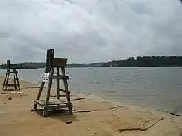 In the widest part of the lake, there are two large islands, each about one square mile (2.6 km2) in size. And another smaller island near the main boat ramp and camp-site.