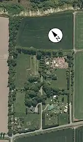 The other remaining 1870s concrete building is the gate house, located some distance away on the Rakaia Barrhill Methven Road. Wason's homestead was at the end of a drive starting at this gate house, on a cliff top overlooking the Rakaia River. The homestead burnt down not long after Wason had left the country, and a new homestead was built nearby. The gatekeeper's lodge originally had a slate roof, but this was later replaced by iron. The last family moved out in 1935. During the second world war, the iron was stripped off the empty building, and it fell into ruin.[30] A later owner, Colin McLachlan, donated the land and the ruin to the people of the district;[31] it is now vested in the Ashburton District Council.[30][32] The renovation began in 1970, with work carried out and financed by descendants of previous inhabitants of the building.[30] A plaque on the building states that it was reopened in March 1979 by the Prime Minister of the time, Robert Muldoon,[31] but his plane ran late and the opening ceremony was conducted by Colin McLachlan.[32] The gate house is fitted out as a museum, and viewing can be arranged through the Ashburton or Methven information centres.[30]