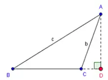 The altitude from A intersects the extended base at D (a point outside the triangle).