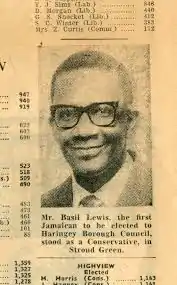 Basil Lewis OBE (1927-2020) was a British community leader, politician and businessman. He was the first black councillor elected in the London Borough of Haringey and one of the first black councillors elected anywhere in the United Kingdom.[2][3]