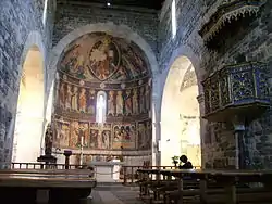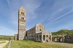 The Basilica della Santissima Trinità di Saccargia (Italian pronunciation: [baˈziːlika della sanˈtissima triniˈta ddi sakˈkardʒa]) (English: "Basilica of the Holy Trinity of Saccargia") is a church in the comune of Codrongianos, northern Sardinia, Italy. It is one of the most important Romanesque site in the island. The construction is entirely in local stone (black basalt and white limestone), with a typical appearance of Tuscan Romanesque style.