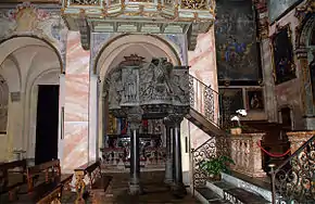 More ancient art pieces are represented by the Romanesque ambon and by the frescos on the lateral aisles' walls and on the church's pillars, dating back to 14th to 16th century.