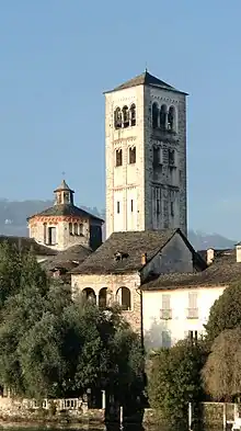The Basilica di San Giulio is a Roman Catholic church on the small Isola San Giulio in the center of Lake Orta, province of Novara, north-western Italy. It has the status of a minor basilica.[1] Although the island is part of the Orta San Giulio municipality, the basilica belongs to the San Giacomo parish, including the island and a portion of the west coast of the lake in San Maurizio d'Opaglio municipality.
