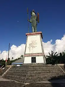 Santiago is regarded as a hero by locals in North Sulawesi, especially by those in the smaller region of islands known collectively as Nusa Utara.[1] Korem 131/Santiago, an Indonesian military command based in Manado under Kodam XIII/Merdeka, is named for him.[5][12] His grave was rediscovered in 1950.[5] Several places, especially those in Sangihe Islands Regency, are named after him, including Gelora Santiago Field in town of Tahuna,[13][14] and the urban village (kelurahan) of Santiago within the town.[15][16] A statue of him was built in 2009 on the northernmost island of Indonesia, Miangas, by the government.[17][18] He was nominated to be a National Hero of Indonesia by the North Sulawesi provincial government, which was accepted and awarded on 10 November 2023 by Joko Widodo.[19][1][20][21]
