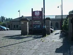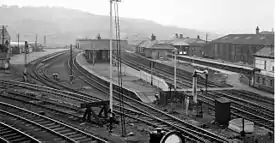 The station was at one time rather larger than it is today, as it was also served by the Great Northern Railway branch line from Bradford to Wakefield via Dewsbury Central from December 1864 to 7 September 1964, when it fell victim to the Beeching Axe.[4] It was also the junction for branch lines to Birstall (opened in 1852, closed to passengers as a wartime economy measure in 1917 and to all traffic in 1963) and to Tingley and Beeston (opened in 1890, closed in 1951).[5][6] The station was significantly enlarged (with the addition of three extra platforms) on the opening of the latter route in August 1890, but reverted to the present twin-platform configuration after the closure and abandonment of the Bradford - Wakefield line in 1964/5.Few traces of any of these routes remain today, but the abutments of the former bridge that took the Bradford line across the line from Leeds near Batley signal box (east of the station) can still be seen.