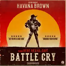 "Battle Cry" is a song by Australian DJ and singer Havana Brown featuring Bebe Rexha and Savi. The song was released as a single on 24 July 2015[1] and debuted on the Australian ARIA Singles Chart at number 59 for the week commencing 17 August 2015.[2]