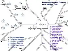 ![]() Scheme of the defense of Evora, done by J. C. Baker | |||||||