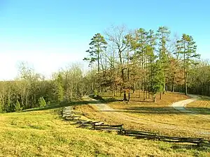 Although Sumter now had a thousand Backcountry militiamen, Tarleton had more than five hundred regulars under his command, including three hundred British regulars. And Tarleton had never yet been defeated.[10] Sumter and his colonels decided the best course was to find a strong defensive position and wait for Tarleton to attack them. Colonel Thomas Brandon, who knew the area, suggested the nearby farm of William Blackstock, a homestead on the hills above the Tyger River.[9] The land had been cleared, providing fields of fire and room for maneuver, and the outbuildings—solid log structures—were not chinked and thus provided "narrow but convenient openings for men firing from behind cover."[11]