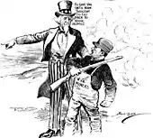 On August 30, Morgan appointed Colonel William Eubanks of the West Virginia National Guard to command the government and volunteer forces confronting the miners.[34] Sporadic gun battles continued for a week, with the miners at one time nearly breaking through to the town of Logan and their target destinations, the non-unionized Logan and Mingo counties to the south. Gatling guns and machine guns were employed by both sides, along with additional firepower.[35][36][37] Chafin's forces consisted of 90 men from Bluefield, West Virginia; 40 from Huntington, West Virginia; and about 120 from the West Virginia State Police.[38] Three of Chafin's forces, two volunteers and a deputy sheriff, were killed,[39][40][41][38] and one miner was fatally wounded.[42]