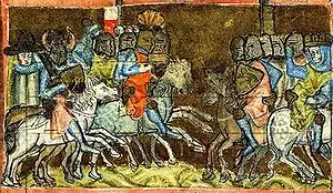 ![]() The Battle of Bornhöved as displayed in the Sächsische Weltchronik | |||||||||
