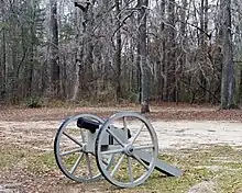 Campbell led the troops south until they reached Ebenezer, burning the bridge across Brier Creek on the way. At Ebenezer he turned command of the column over to General Prevost's younger brother, Lieutenant Colonel Mark Prevost, and headed down the river to return to England.[12] General Ashe trailed after Campbell, and on February 26 camped near the confluence of Brier Creek and the Savannah River, about 15 miles (24 km) to the north. Ashe set his men to repairing the bridge.[13][14] While encamped there, he was joined by about 200 light cavalry and some additional light infantry units, swelling his force to about 1,300 men.