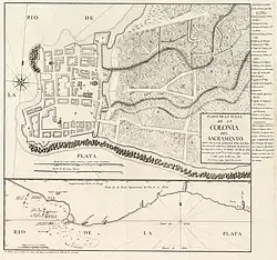 A 1777 map of Colonia del Sacramento by Tomás López depicting all the bastions