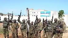 The Battle of Kismayo was an offensive led by the Kenya Defence Forces, under the codename Operation Sledge Hammer, to seize the port city of Kismayo, Somalia, from Al-Shabaab from 28 September 2012.[6][7] Fighting alongside the Kenya Army were Raskamboni movement militia and the Somali Army.[8]