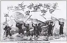 The combat motivated the publication of the political cartoon, titled "El Padre Cobos" on October 29, 1881. The cartoonist mocks "The immortals of Grau", who are eliminated like birds in a hunting session.