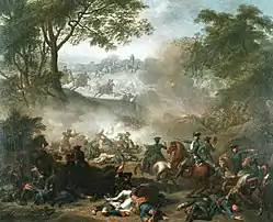 Battle of Lesnaya by Jean-Marc Nattier, Russian army forcing the Swedish outpost out of the forest towards Lesnaya.
