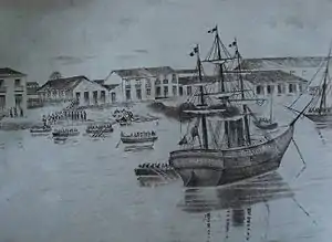 As the "Casa Fuerte" remained the last resort of the defenders right at the river, the Republicans decided to attack with heavy artillery from the hill of the Encarnación.[1]:42 Having seen the shelling the French auxiliaries and General Vegas' Mexicans thus evacuated themselves to the ships[3] and sailed to Laguna.[5] The fleeing garrison left big amount of supplies behind among these were two pieces of 68-pound artillery, one 12-pound and 4-pounder culverins, an 8 pounder cannon and its rotating platform, three small 2-pounder pieces, 90 firearms with bayonets, 8 lances, 77 cans of shrapnel, a barrel of grenades and five horses.[1]:44