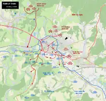 Unknown to Guderian, von Kleist, his immediate superior, had contacted Loerzer and banned Guderian's proposed long systematic approach in favour of one big assault. Guderian complained. Kleist ignored him. Yet, the following morning, Loerzer rejected Kleist's method and went ahead with the agreed rolling bombing as discussed with Guderian. Loerzer would later say that the official order from Hugo Sperrle had arrived too late to make changes.[41]