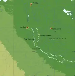 ![]() Overview of the region where the Battle of Ullais was fought, showing the river Euphrates and its tributary the Khaseef (Iraq) | |||||||