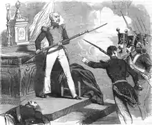 The assault started on 6 September 1831. Russian forces surprised the Poles by attacking the strongest Polish position in the suburb of Wola. Despite staunch defence of some of the ramparts, especially Fort 54 and Fort 56, after the first day the outer line of Polish defences had been breached by Russian infantry and artillery. In a heroic stand at the Wola redoubt, only 11 Polish defenders remained alive out of a garrison of 3,500.[1] The following day fights resumed, but this time Russian artillery was close enough to shell the western boroughs of the city itself. Although losses were similar on both sides, Polish authorities decided not to risk another Massacre of Praga and ordered the evacuation of the city. On 8 September 1831 Warsaw lay in Russian hands, and the remainder of the Polish Army retreated to Modlin. The November Uprising ended soon afterwards, with the remnants of the Polish Army crossing the borders of Prussia and Austria, to avoid being captured by the Russians.