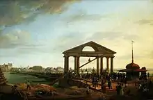 Pontoon bridge over the Vistula on an 1831 painting by Marcin Zaleski