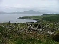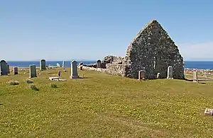 The MacDonalds of Uist barred the doors of Trumpan Church, or Kilconan Church as it was once known, east of the shores of Ardmore Bay. They then set fire to the church full of worshipers. No one escaped alive except one girl who, although mortally wounded, managed to give the alarm. On hearing the news, the chief of Clan MacLeod and his men set off for Ardmore bay where a battle ensued. The MacDonalds were killed almost to a man. The corpses of the MacDonalds were dragged and then buried in a turf dyke, and the incident remembered as the "Battle of the Spoiling Dyke". The atrocity by the MacDonalds was to exact vengeance on the MacLeods for their atrocity of the massacre of MacDonalds in the Cave of Frances on the Isle of Eigg a couple of years earlier.[4] This again was a tit-for-tat revenge between the two feuding clans.[2][5][6]