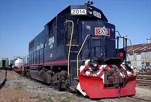 Note: Both GP10 2000 and 2001 were out of service by the time of the railroad's closure. 2000 had a set of trucks swapped with GP38 2014 in August 2013 and appeared to be missing a compressor.[19][20] 2001 was missing a set of trucks.[21][22] No. 2001, dormant for over a decade, was cut up for scrap on January 18, 2019.[23]