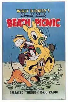 Beach Picnic is a 1939 Donald Duck animated short film which was originally released on June 9, 1939, featuring Donald Duck and Pluto and produced by Walt Disney Productions in Technicolor and distributed by RKO Radio Pictures.[1] This cartoon featured Donald and Pluto at the beach. It was the first cartoon in the Donald Duck series to feature Pluto (although he had previously appeared with Donald in Donald and Pluto).
