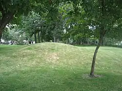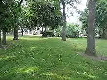 The Beattie Park Mound Group is located in downtown Rockford, Illinois' Beattie Park. It consists of three conical mounds (one outside the park boundaries), an effigy mound in the shape of a turtle, and a linear mound.[1] Beattie Park is north of Park Avenue and south of Mound Avenue, but there is one mound remnant in front of the house at 509 Indian Terrace. On its west, the park is bounded by Main Street and to its east lies the Rock River.[2] Mounds are the most visible evidence of cultures that lived for hundreds of years in the mix of biomes in northern Illinois.[3]