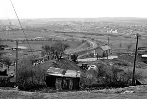 The first section of the Merthyr, Tredegar and Abergavenny Railway from Abergavenny to Brynmawr was opened on 29 September 1862.[2] The line was leased and operated by the London and North Western Railway which acquired the smaller railway company on 30 June 1866.[3][4] Beaufort station opened on 1 March 1864.[5][6] It became a junction station on 2 September 1867 with the opening of a branch to Ebbw Vale.[7][8] The station nameboards read "Change for Ebbw Vale" even though the branch service started at Brynmawr.[9][10] Beaufort was busy with Ebbw Vale traffic until c.1925 as there was a daily service to and from Brynamwr of over thirty trains.[11] Ebbw Vale was reached by the 93-yard (85 m) Beaufort Viaduct before reaching Ebbw Vale Junction and the 93-yard (85 m) Rhyd Viaduct.[12] Ebbw Vale station was near the area which is known locally as 'The Crossing', in the town centre.