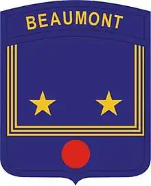 The Beaumont JROTC program shoulder sleeve insignia reflected the "bib" of a sailor's uniform, echoing the school mascot, while the red disc symbolized the surgical work of William Beaumont, the school's namesake.