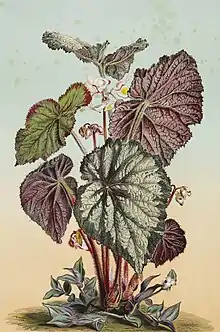 Begonia rex, the king begonia, is a species of flowering plant in the family Begoniaceae. It is found from Arunachal Pradesh to southeast China, and has been introduced to Bangladesh, Cuba, and Hispaniola.[1][2] It is a parent to over 500 cultivars in the Begonia Rex Cultorum Group of houseplants.[3] Other parents in the multitude of crosses made during the creation of the Group include Begonia annulata, B. cathayana, B. decora, B. diadema, B. dregei, B. grandis, B. hatacoa, B. palmata, and B. xanthina.[3]