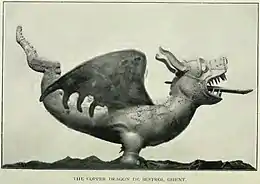 The gilded copper Dragon on top of the Ghent tower, constructed in 1377–1378 [1]