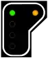 This type of aspect requires the driver to slow, for example, because the next signal shows a non-clear aspect (double yellow) or imposes a speed limit (yellow-green horizontal).