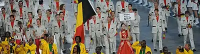 Belgium competed at the 2008 Summer Olympics in Beijing, People's Republic of China. 96 Belgians took part in Beijing, the biggest delegation for the country since 1976. Belgium won 2 gold medals, better achievement than in 2004, when the country won 1 gold and 2 bronze medals.
