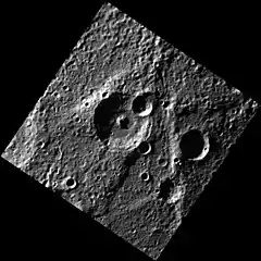 Belinskij (sometimes Belinskii) is a crater on Mercury. It has a diameter of 70 kilometers.[1] Its name was adopted by the International Astronomical Union in 1985. Belinskij is named for the Russian journalist and critic Vissarion Grigoryevich Belinsky, who lived from 1811 to 1848.[2]