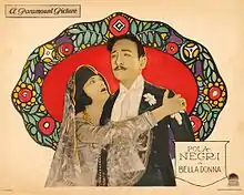 Bella Donna is a 1923 American silent film produced by Famous Players–Lasky and released by Paramount Pictures. The film is based on the 1909 novel, Bella Donna, by Robert Smythe Hichens which was later adapted for a 1912 Broadway play starring Alla Nazimova. This film is also a remake of the 1915 Paramount film Bella Donna starring Pauline Frederick. The 1923 film was directed by George Fitzmaurice and starred Pola Negri in her first American film.[1][2]
