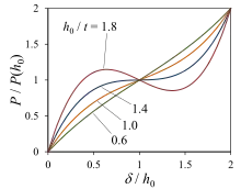 Load-deflection curves for Belleville springs, normalized by height, as described by Almen and Làszlò