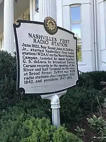 The first radio station in Nashville went on air in May 1922 when Boy Scout[18] John "Jack" DeWitt Jr., a 16-year-old high school student, installed a twenty-watt transmitter at Belmont. The station, WDAA, was born when Doctor C. E. Crosland, Associate President, realized the potential advertising value to the college of a radio station. The WDAA program on April 18, 1922, marked the first time a music program was broadcast in Nashville. The broadcast could be heard 150 to 200 miles (320 km) from the school.[19] DeWitt later became WSM (AM) radio station's chief engineer, 1932–1942, and president, 1947–1968.[20]