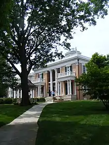 Upon the retirement of Heron and Hood, Belmont Women's College merged with Ward Seminary in 1913 and was known as Ward—Belmont College, which included both a junior college and college-prep (or high) school for women.[12][13] Today the Belmont Mansion is owned by Belmont University but maintained by the Belmont Mansion Association, a non-profit group. The mansion is open for tours and features Victorian art and furnishings. The water tower, gardens, with surviving gazebos and outdoor statuary from the Acklen era, are part of the college campus.[14] In 1991, the school became Belmont University.[15]