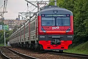 The Belorussky suburban railway line (Russian: Белорусское направление Московской железной дороги) is one of eleven railway lines used for suburban railway connections between Moscow, Russia, and surrounding areas, mostly in Moscow Oblast. The Belorussky suburban railway line connects Moscow with the stations in the west, in particular, with the towns of Odintsovo, Golitsyno, Zvenigorod, Kubinka, and Mozhaysk. The stations the line serves are located in Moscow, as well as in Odintsovo, Ruza, and Mozhaysk in Moscow Oblast. Some of the suburban trains have their eastern terminus at Moscow Belorussky railway station in Moscow, others commute from the Savyolovsky suburban railway line. In the western direction, the suburban trains terminate at Usovo, Odintsovo, Golitsyno, Zvenigorod, Kubinka I, Dorokhovo, Mozhaysk, and Borodino.[1] The line is operated by Moscow Railway. The tracks between Moscow Belorussky railway station and Odintsovo are also used by Line D1, one of the Moscow Central Diameters, and by the service to Sheremetyevo International Airport, provided by Aeroexpress.