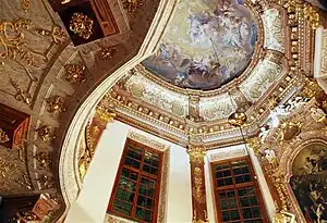Construction of the chapel was completed in 1723.[1] The Palace Chapel was first opened to the public in May 1753. Up to this time, it had been reserved for the daily prayers of Prince Eugene and a select group of eminent individuals made up of the nobility, artists, and scholars. An Inventory of the Imperial and Royal Palace Chapel in the Belvedere from 1776 lists all the articles required to hold a Holy Mass. It can therefore be assumed with certainty that it was used for ecclesiastical purposes. At the end of the war in 1918 and the abdication of the last emperor of the Habsburg monarchy, the palace ensemble became state property. While both palaces were severely damaged during World War II, the Belvedere Palace Chapel survived intact.