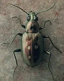 - ↑ Maddison, David R. (2012). "Phylogeny of Bembidion and related ground beetles (Coleoptera: Carabidae: Trechinae: Bembidiini: Bembidiina)". Molecular Phylogenetics and Evolution. 63 (3): 533–576. doi:10.1016/j.ympev.2012.01.015. PMID 22421212.