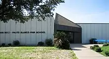 Ben Bolt-Palito Blanco High School is a public high school located in Ben Bolt (USA) and classified as a 2A school by the UIL. It is part of the Ben Bolt-Palito Blanco Independent School District located in central Jim Wells County and serves the students of Ben Bolt, Palito Blanco, and the Green Acres area. In 2013, the school was rated "Met Standard" by the Texas Education Agency.[2]